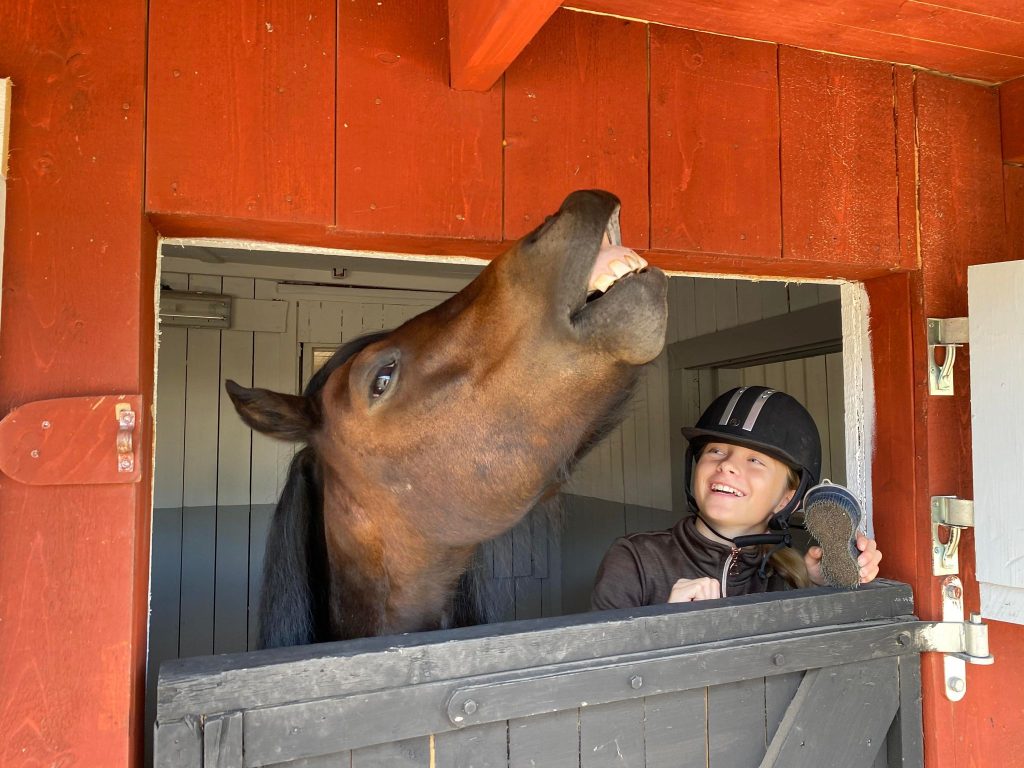 När jag såg Conjaks annons, kunde jag inte motstå honom. Han såg ut som en riktig John Bauer-häst! Han var dessutom inkörd. Kanske en bra blivande körhäst till mig (Maud).