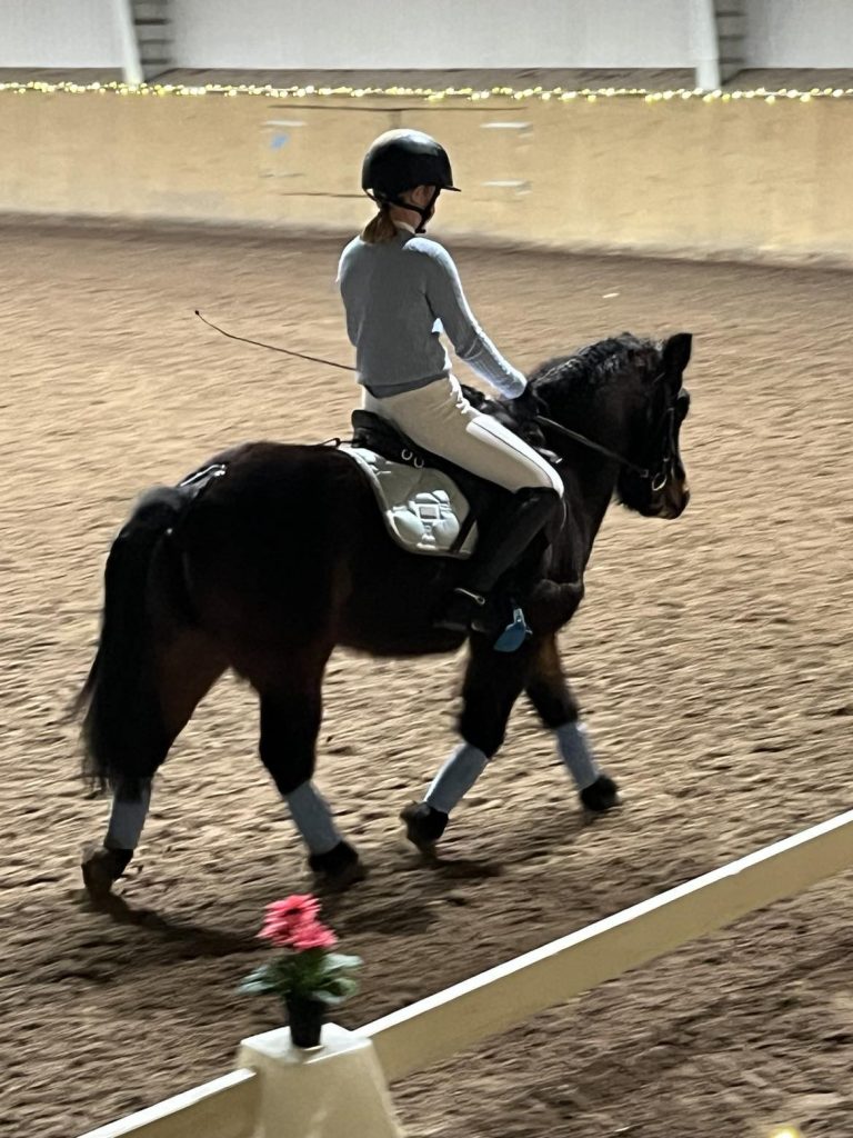 I måndags ägde vårt årliga klubbmästerskap i dressyr rum. Det var en av de kallaste dagarna hittills i år. Mätaren stod på hela -13 grader när kvällen var slut. Så lite bitigt i kinderna blev det för de startande!