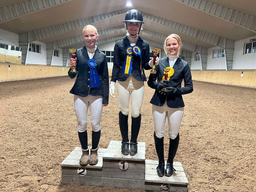 Det var tätt i resultaten mellan de olika ekipagen och för första gången någonsin hade vi en syskonskara på toppen i KM-klassen! Alla systrarna Myrdals placerade sig på topp! Allra bäst gick det för Mikaela Myrdal som bytte häst i sista stund, då Mabuza troligen hade lite kolikkänning. Mikaela och Hjälmsättras Hannalee fick hela 73,9%. Tätt följd av Alexandra Myrdal på MSH Rio på 73,0%. 3:e platsen intogs av Madeleine Myrdal också ridandes på Rio på 70,4% Stort, stort grattis till er alla, men framför allt till Mikaela som blev klubbmästare 2024!