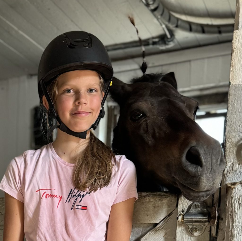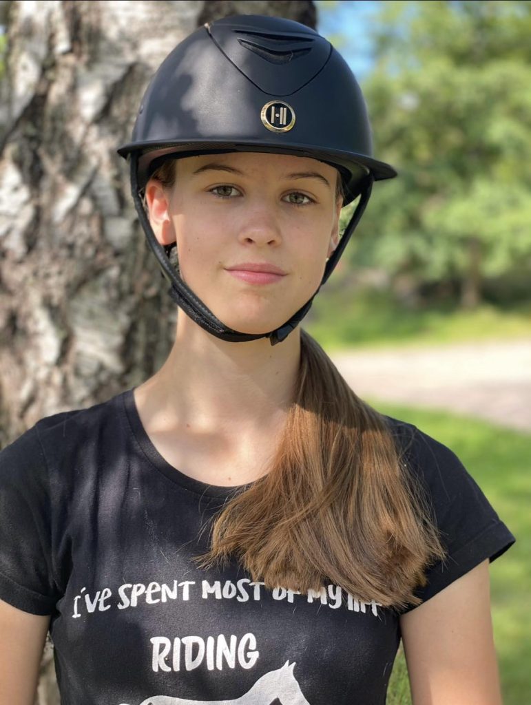 Otilia hittar ni i stallet på fredagar och söndagar. Otilia är medryttare på Monét.