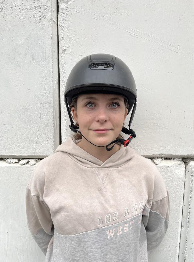 Stella hittar ni i stallet på onsdagar, torsdagar och fredagar. Stella är medryttare på Meya.